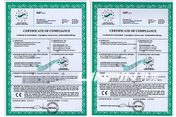 CE認證是產(chǎn)品進入歐盟市場所必須的安全認證,林頻儀器為順應歐盟市場需求,擴大設備出口能力,經(jīng)過公司員工的共同努力,在技術儲備和管理工作進行系統(tǒng)完善后,公司順利通過歐盟CE認證證書。CE證書的獲得驗證了林頻儀器生產(chǎn)的環(huán)境試驗箱已經(jīng)達到歐盟指令規(guī)定的要求,是企業(yè)對用戶的一種承諾,增加了用戶對設備的信任程度,在質(zhì)量性能和安全性能方面都符合歐盟國家的出口質(zhì)量標準,為公司大力開拓國際市場奠定了良好的基礎。