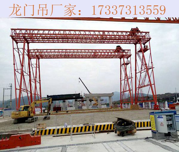 云南昭通龍門吊銷售廠家生產的軌道式集裝箱門式起重機由主粱、剛性和柔性門腿、運行小車、起升機構、大車運行機構、電氣系統、操作駕駛室等組成。根據堆場作業工藝,在單門腿方向或雙門腿方向外伸懸臂成為單懸臂或雙懸臂機型,不外伸成為無懸臂機型。根據場地、集裝箱儲運工藝流程及裝卸的車輛(集裝箱卡車或鐵路車輛)確定采用無懸臂、單懸臂和雙懸臂的不同結構形式。在港口、碼頭等集裝箱集散區域,軌道式集裝箱門式起重機的應用已經是較為普遍的了。這主要是由于軌道式集裝箱門式起重機擁有如下優勢: