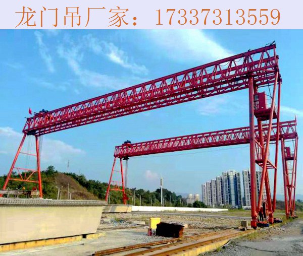 (1)軌道安裝水平彎曲。大車軌道安裝水平彎曲過大,超過跨度公差時,就會引起車輪輪緣與軌道側面摩擦。當龍門起重機運行到該路段時, 就可以明顯地發現起重機搖擺不定并產生傾斜,軌道高的一端車輪啃外側, 低的一端啃內側。