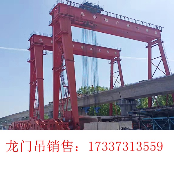 廣西南寧龍門吊廠家17337313559龍門吊是橋式起重機(jī)的一種變形,主要用于室外的貨場、料場貨、散貨的裝卸作業(yè)。龍門吊的金屬結(jié)構(gòu)像門形框架,承載主梁下安裝兩條支腳,可以直接在地面的軌道上行走,主梁兩端可以具有外伸懸臂梁。