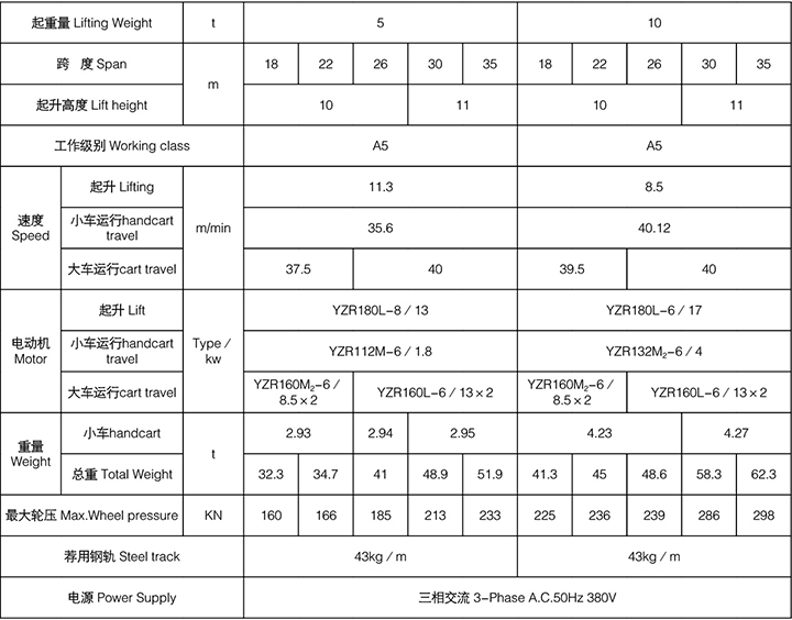 本起重機由橋梁、大車運行機構、小車、電氣設備組成。橋架采用箱形焊接結構,大車運行機構采用分別驅動。全部機構均在操縱室內操縱。